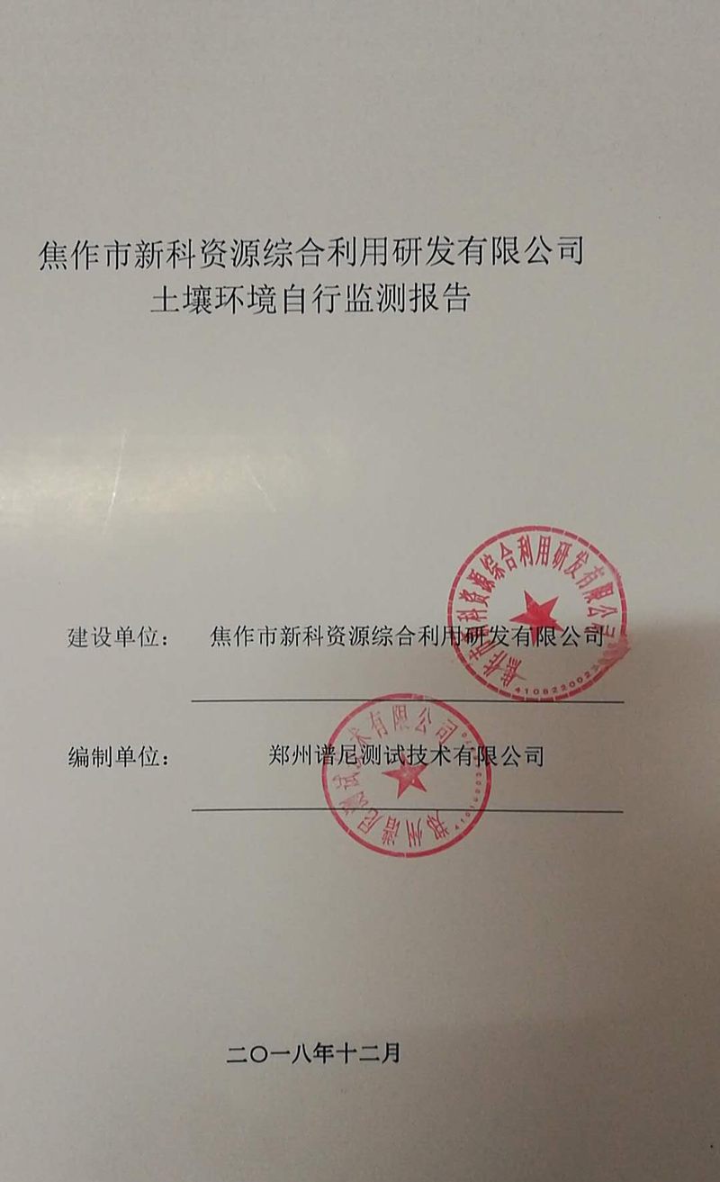 點(diǎn)擊后面鏈接在線查看更多詳情:焦作市新科資源綜合利用研發(fā)有限公司土壤自檢報(bào)告.pdf